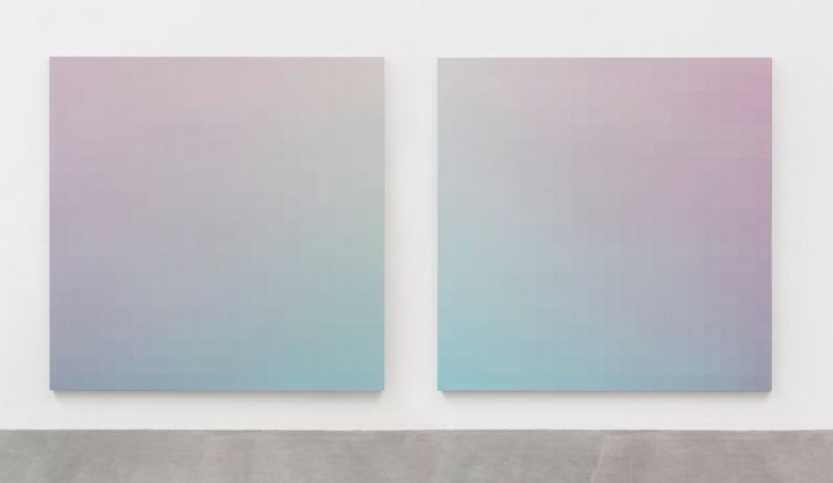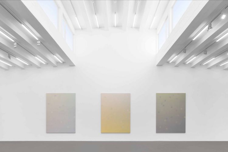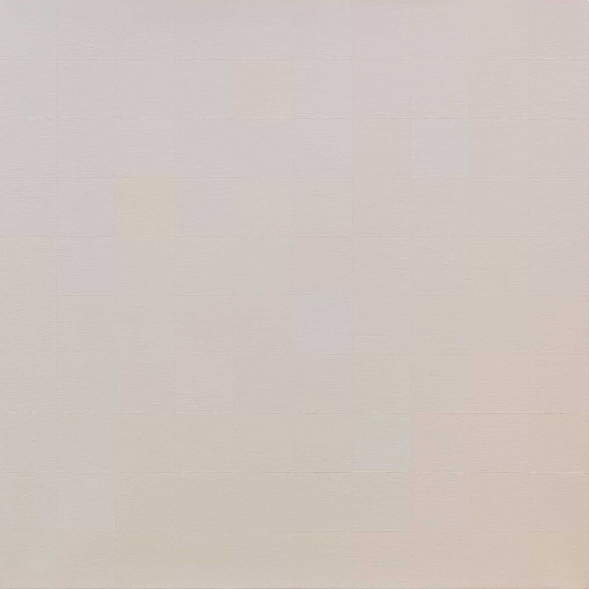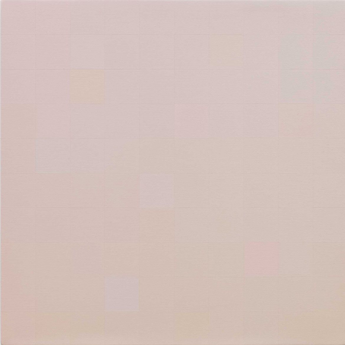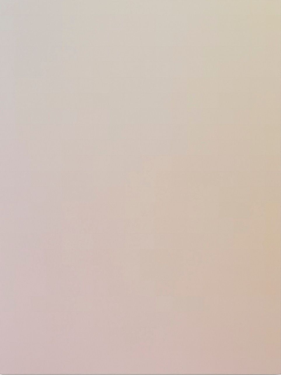 Imagine Zhang Xuerui's paintings as building facades, with equal squares dividing the entire canvas. These squares are parallel to the frame, positing a geometric certainty. The dynamic of the painting comes from its colors—in most cases, each square of color is linked to its neighbor by an almost imperceptible color gradient, making the overall rhythm appear soft and unhurried. The interval shifts in color achieve spatial depth in the picture, but the story within each window is concealed, like flickering lights of varying tone faintly shining through the curtains, while we can never know exactly what is unfolding behind the curtains. They tell a story through non-representational methods, or more precisely, they correspond to a stream-of-consciousness monologue.