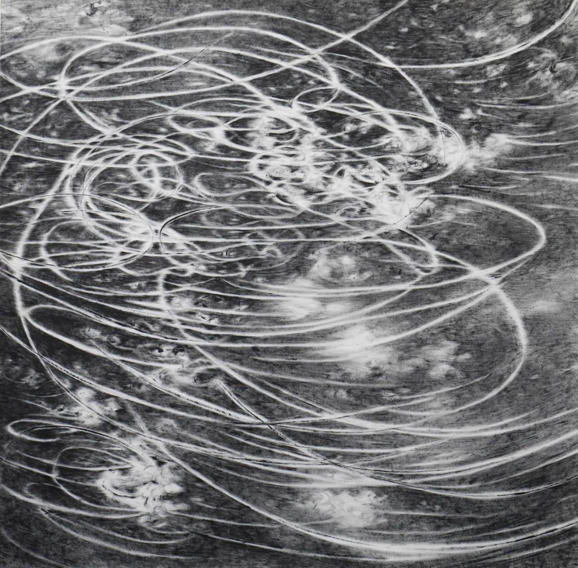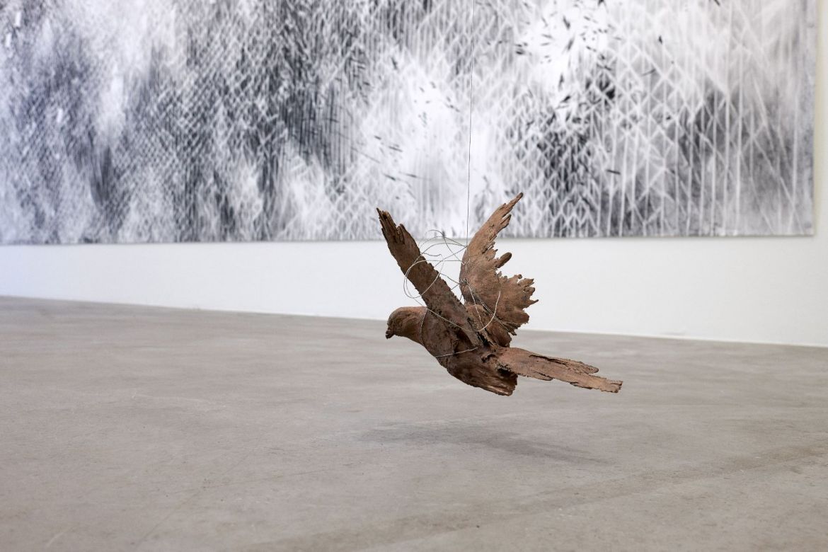 A common denominator in Steiner's practice is the composition of heterotopic dimensions that allow for the permeability and interaction between dualities such as light-dark, inside-outside, drawn-undrawn, kinetic-immobile. A continuous element in the cycle "system" is a net-like structure. Recessed white lines condense into a vibrating grid. They shift, detach and break, and reconnect. It seems as if a rhythm streams into a musical mesh, expanding in space. A surprising ambiguity occurs though because each work appears equally bound and removed from the momentum. In this new series, Steiner reflects the fragility of systems and the principle of causality. Also, each system is subject to spatial, temporal, and resource limits, and underlies physical forces that cause friction. Steiner's artwork can raise the question of anthropogenic influence on the environment, and how everything is inevitably subject to cause and effect.