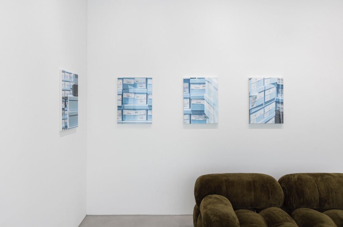 RD: Let’s talk about the individual works in the exhibition in more detail. There are photographs of various garments, and there are photographs of shoeboxes. The box serves as a shell for a product, just as textiles ultimately envelop the body.