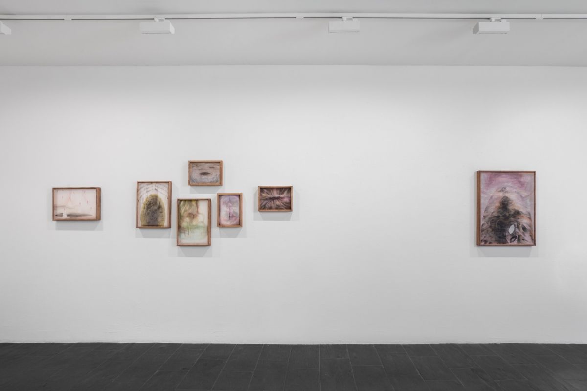 skin in my stomach is the first solo presentation of Lêna Bùi at Galerie Urs Meile where a humble yet rigorous selection of work is featured, charting the artist’s exploration of materials, natural forms and the notion of body as an interchangeable reflection of the world, in a variety of media including silk paintings, photography, handwoven tapestry and moving image.
