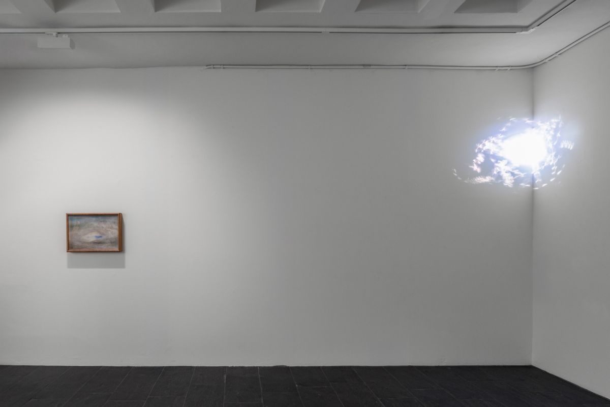 Surrounding this work, a video projection hums with a hypnotic movement of insects heading towards bright light. Atmospheric and opaque – the works render a complex understanding of mortality and renewal. The murmuring voices, the obscure visuals, and the gentle rhythm of thought weave together into experience - an invitation to contemplate the delicate passage between the seen and unseen.